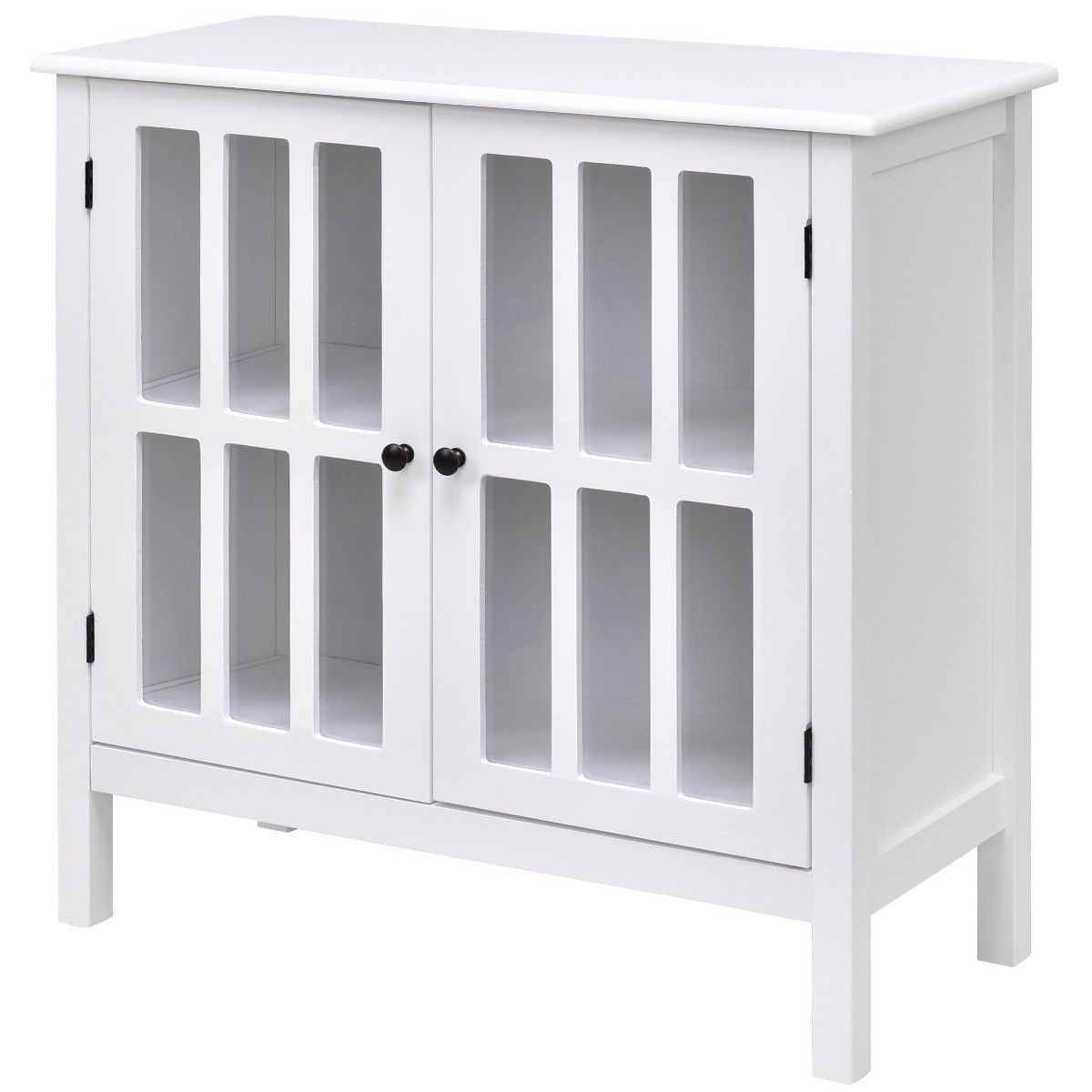 • White Wood Sideboard Buffet Cabinet with Glass Panel Doors