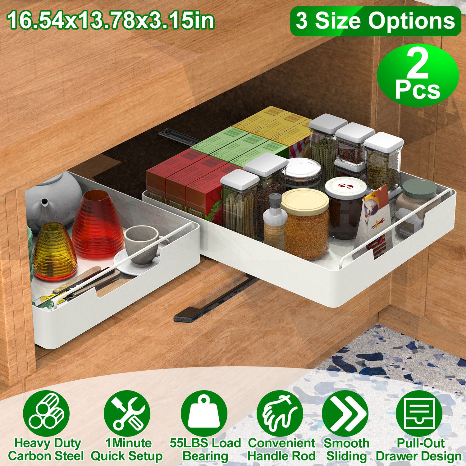 2Pcs Pull Out Cabinet Sliding Shelf Spice Rack Organizer Carbon Steel Roll Out Drawers with Adhesive Nano Film with Handle 55LBS Max Load