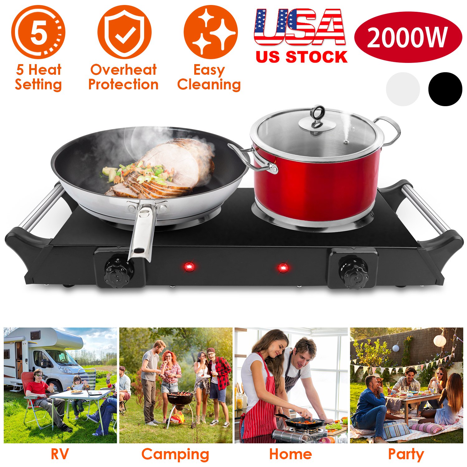 Home > Electric Dual Coil Burner 2000W 5 Temperature Settings Portable for Countertop, RV, Tight Spaces