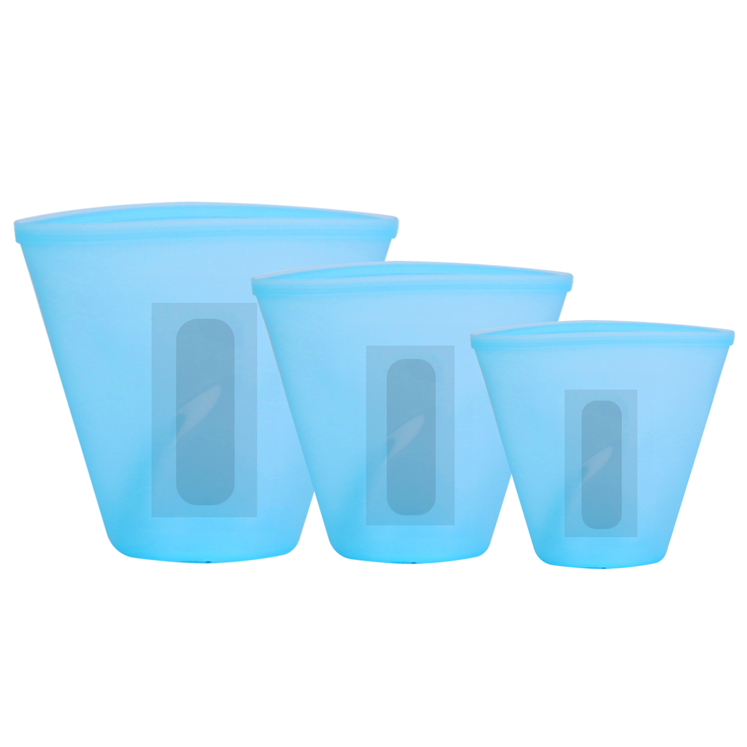 3Pcs Silicone Food Storage Bags Reusable Leak Proof Set Microwave & Dishwasher Safe 8.5oz/17oz/25.4oz