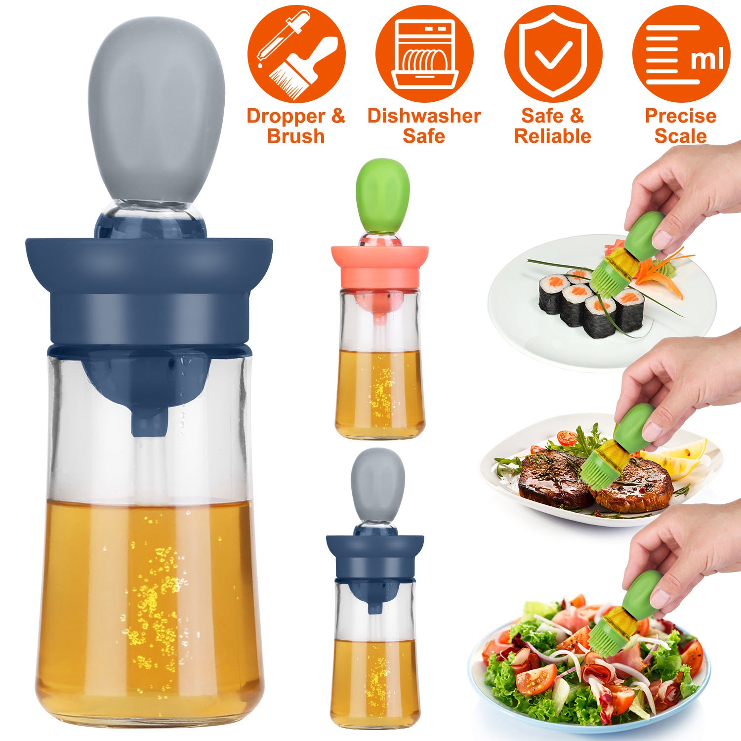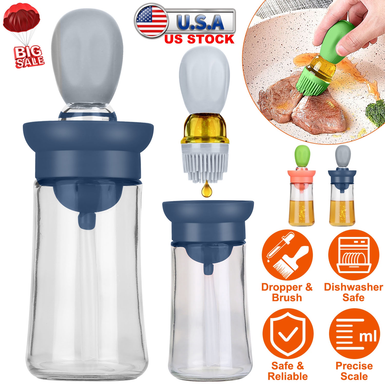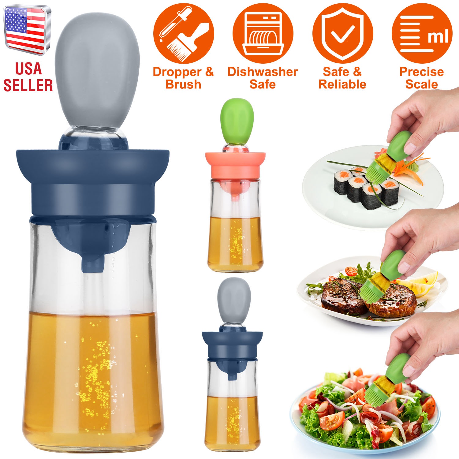 Home > Oil Dispenser Bottle 2 In 1 Glass Olive Oil Dispenser Silicone Dropper with Silicone Brush Dropper Measuring Container for Kitchen Baking BBQ