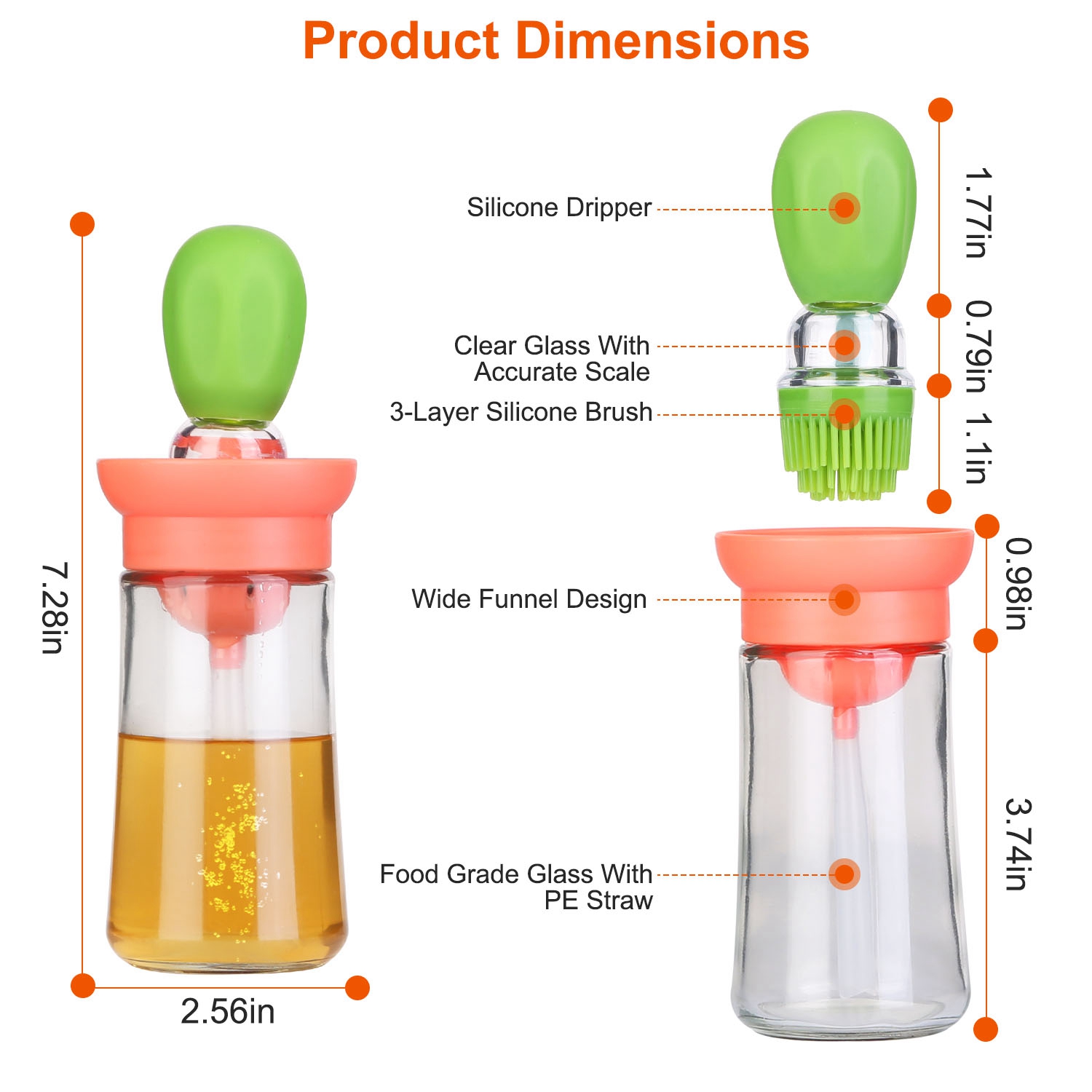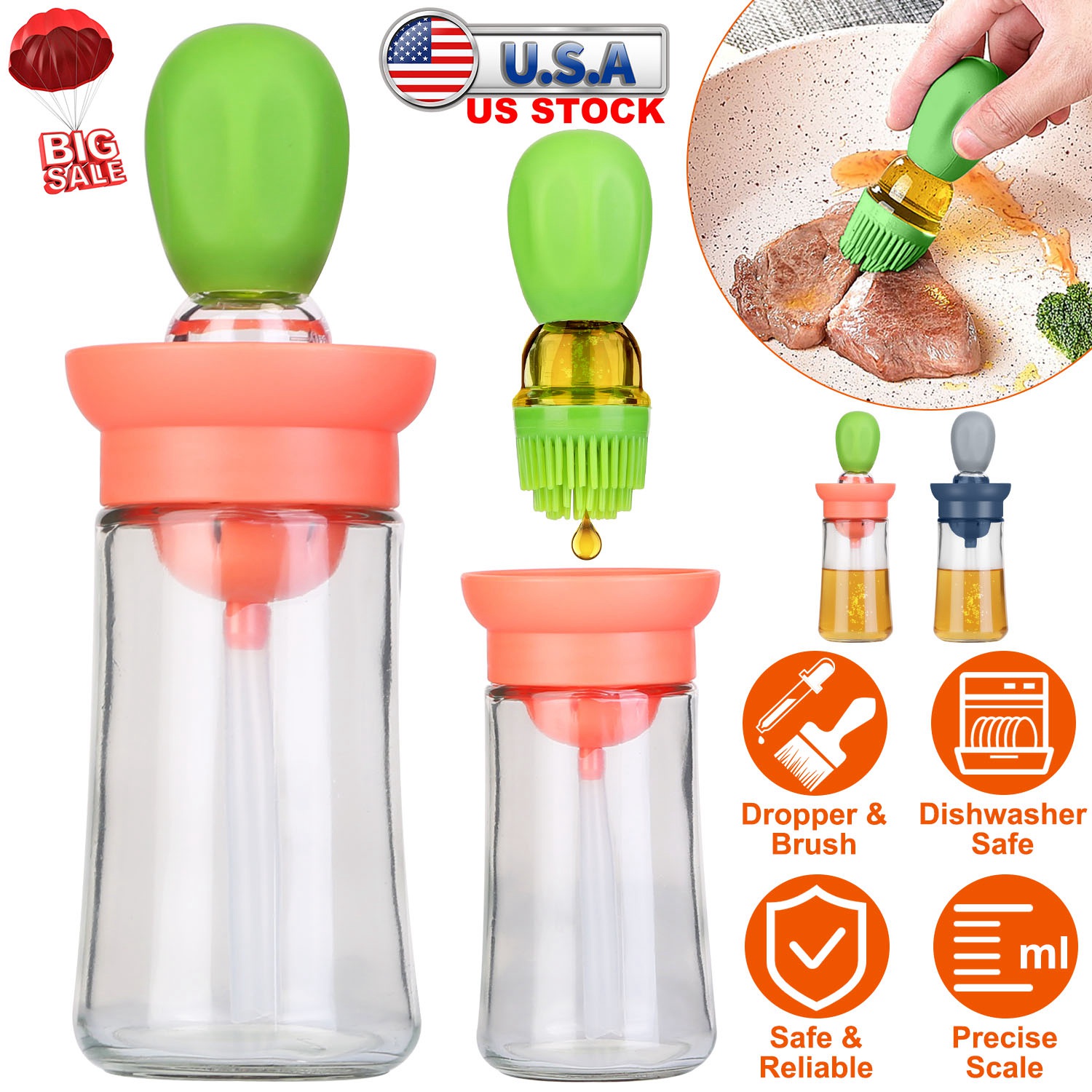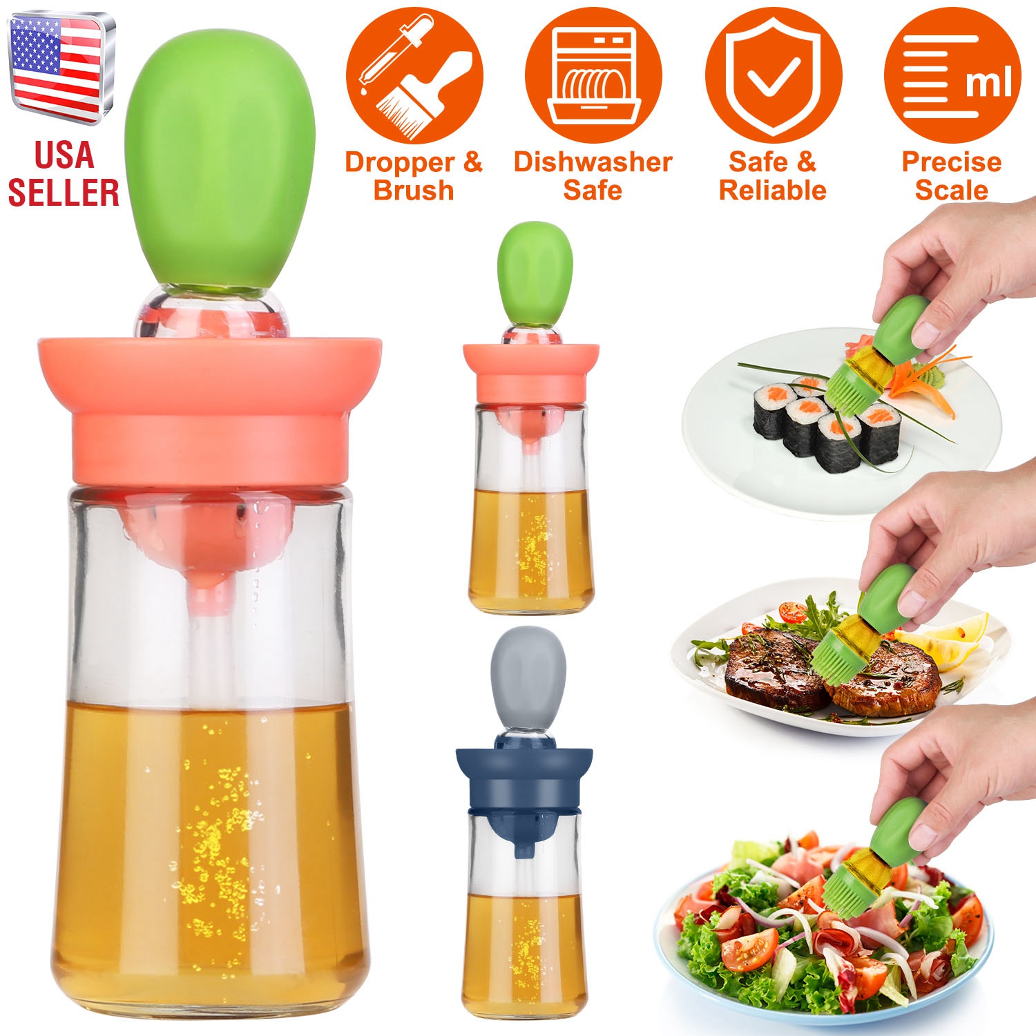Home > Oil Dispenser Bottle 2 In 1 Glass Olive Oil Dispenser Silicone Dropper with Silicone Brush Dropper Measuring Container for Kitchen Baking BBQ