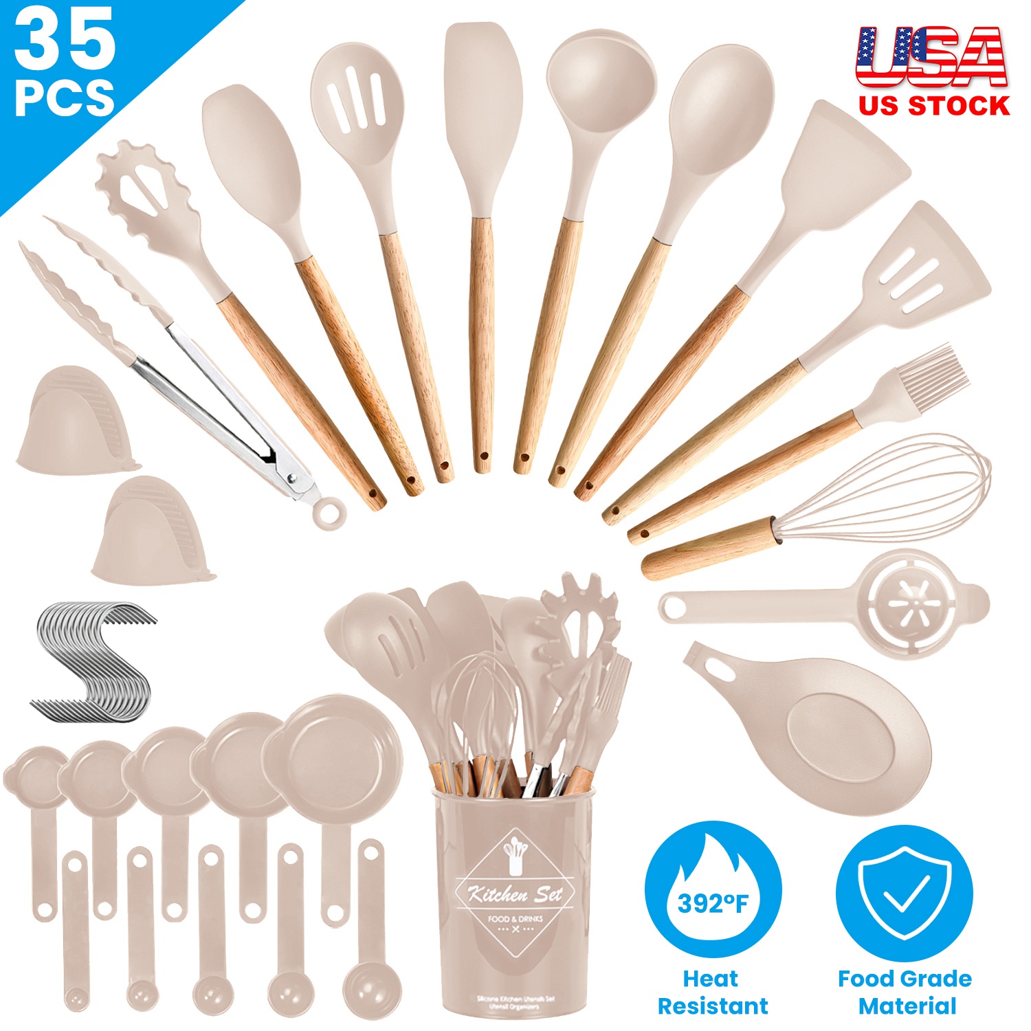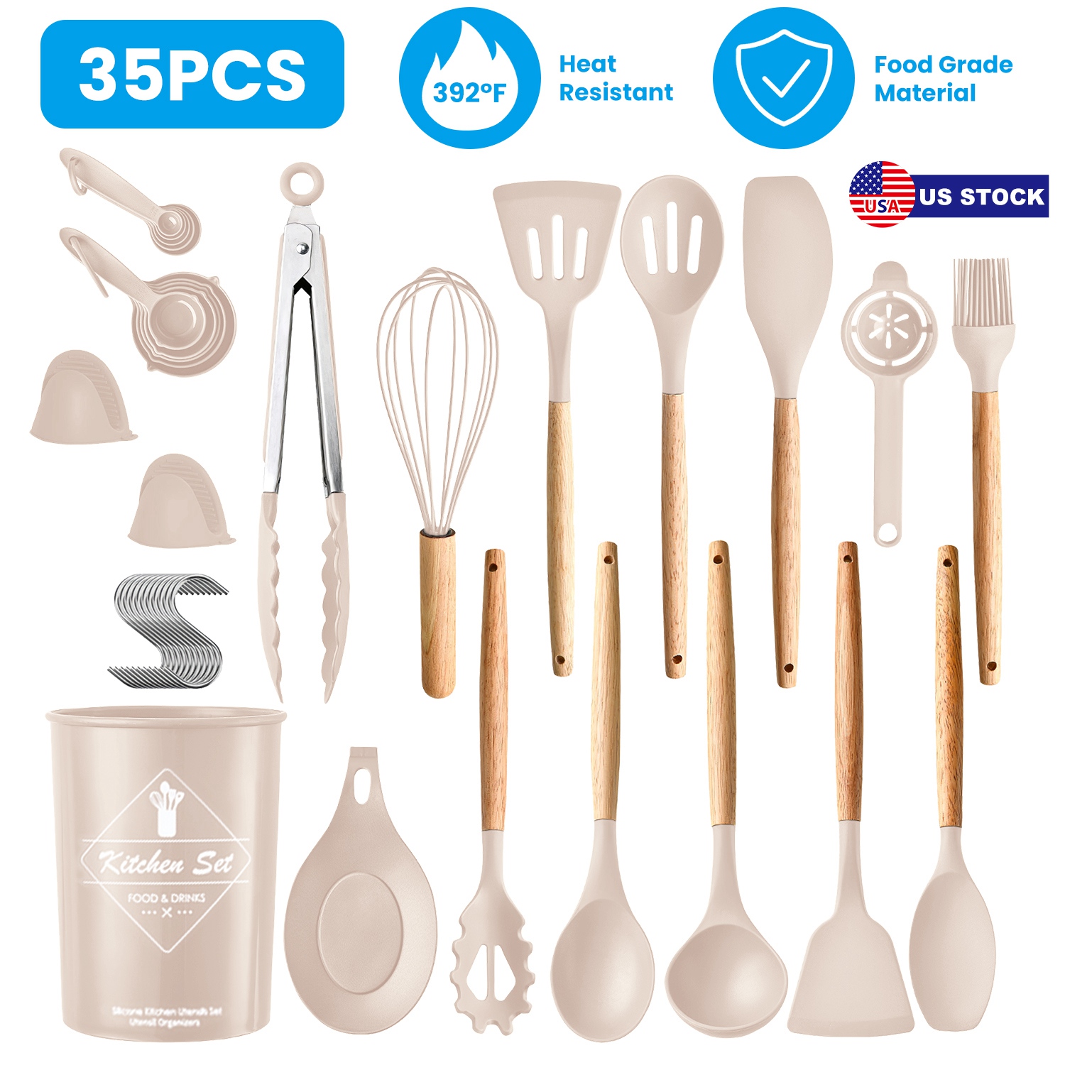 35Pcs Cooking Utensil Set Kitchen with Accessories Egg Holder, Whisk Separator, Tongs, Turner Spoons, etc