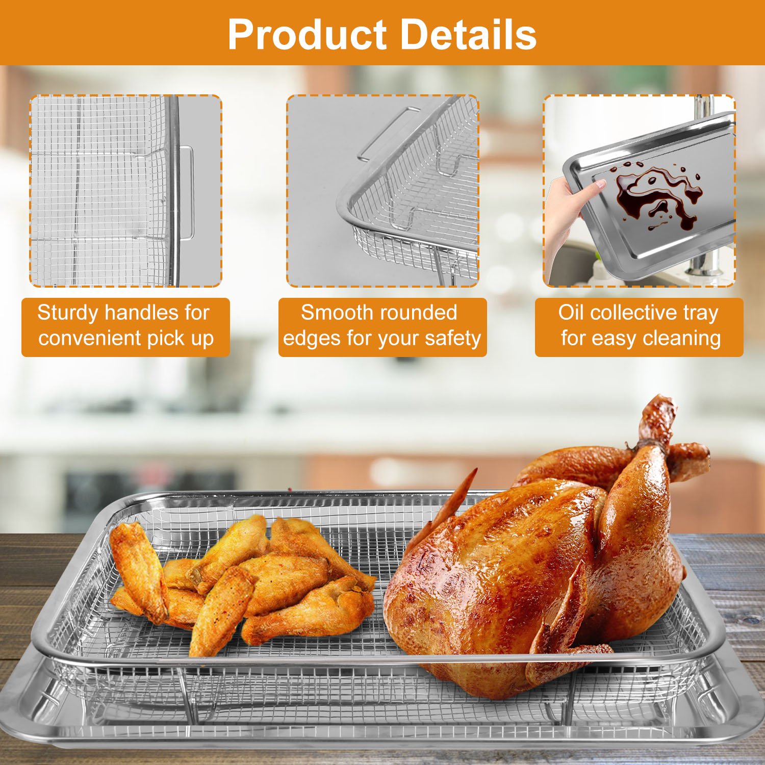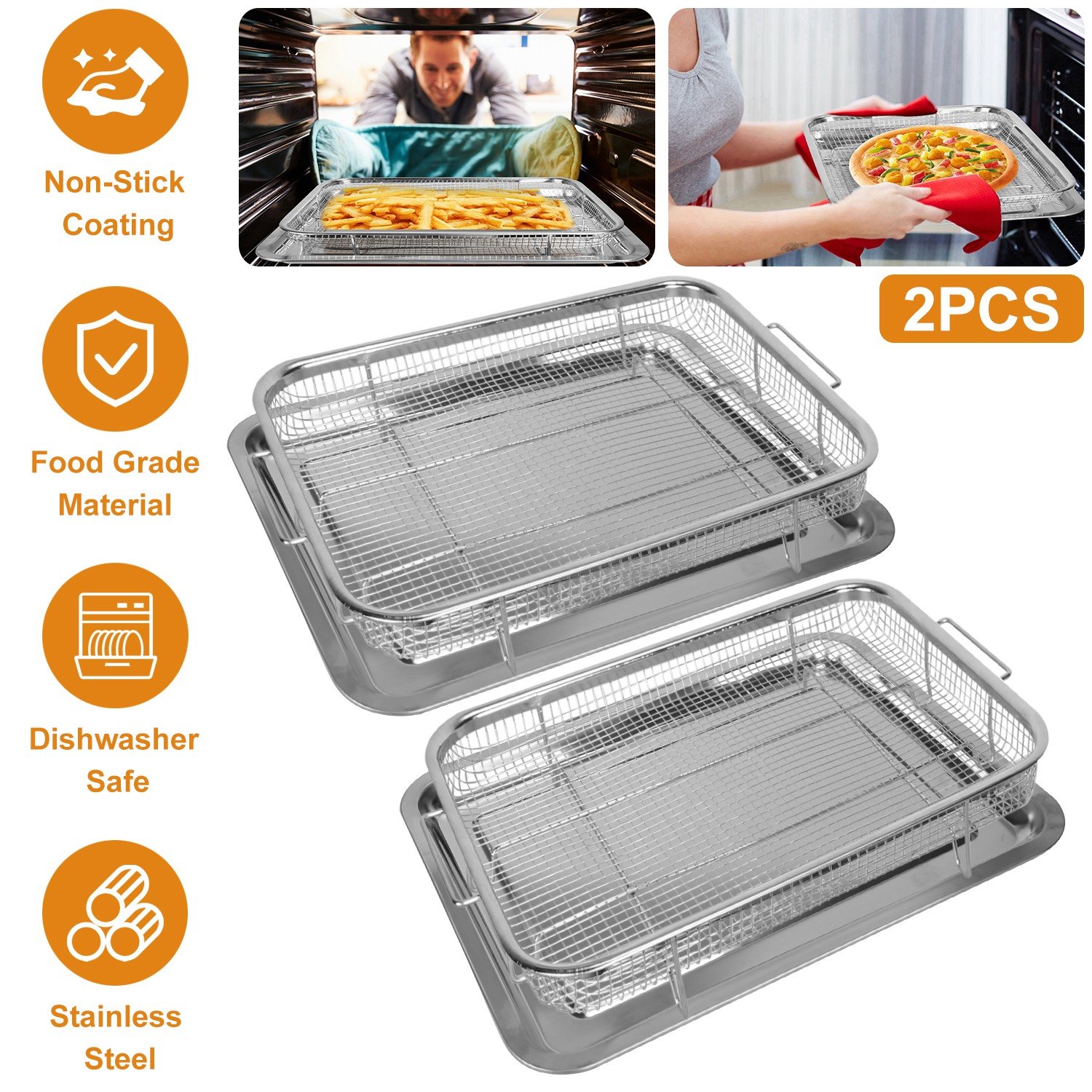 2Pcs Air Fryer Basket Tray 15.35x11.61in Stainless Steel Rustproof Non-Stick Oven Pan and Tray For Bake Grill Crispy Food Dishwasher Safe