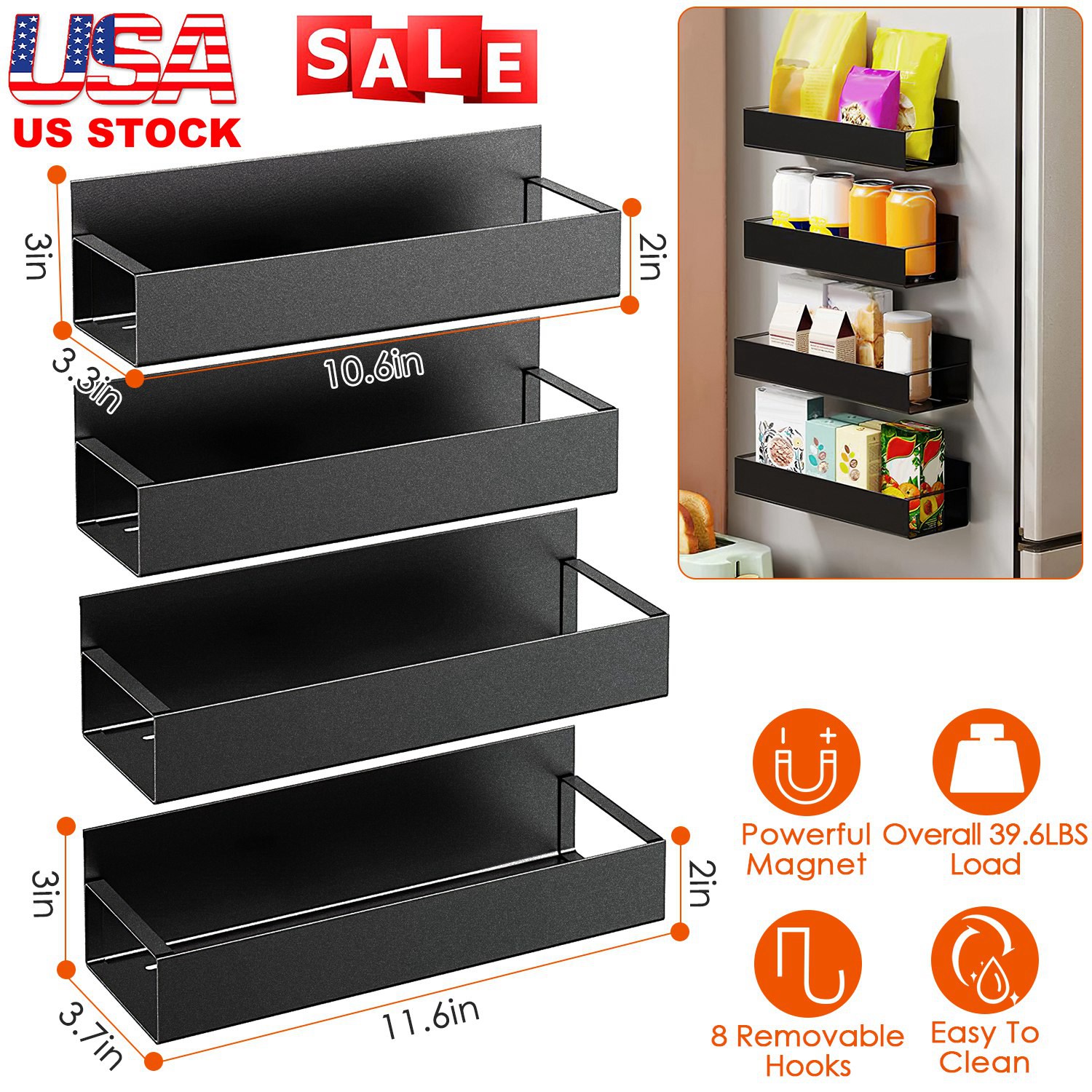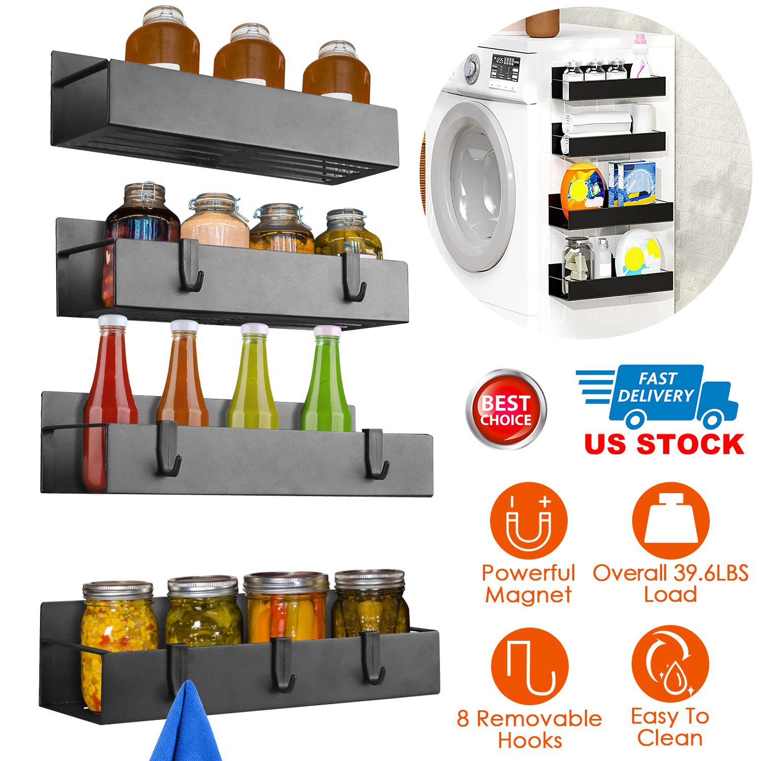 Home > 4Pcs Spice Rack Strong Magnetic Seasoning Storage Shelf with 8 Removable Hooks for Refrigerator Microwave Spice Storage Holder
