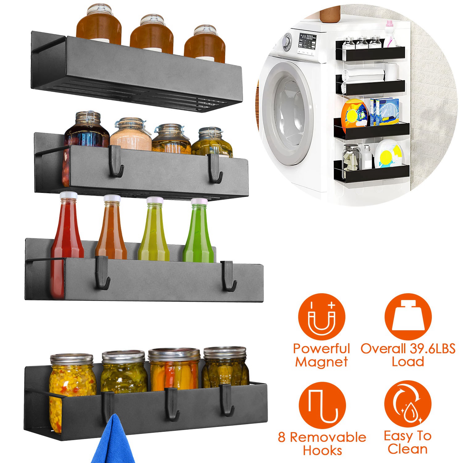 4Pcs Spice Rack Strong Magnetic Seasoning Storage Shelf with 8 Removable Hooks for Refrigerator Microwave Spice Storage Holder