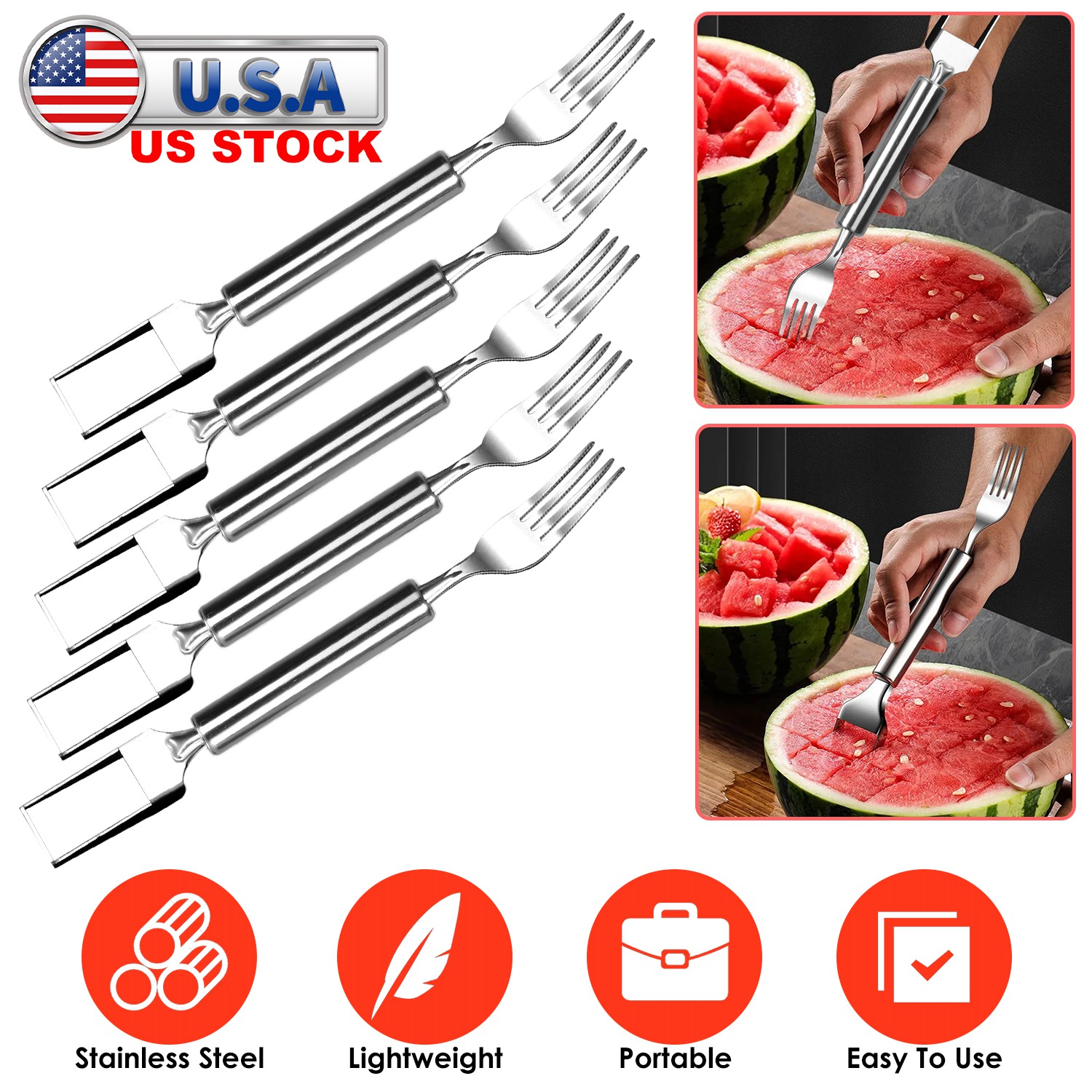Home > 5Pcs 2 in 1 Watermelon Cutter Slicer Fork Stainless Steel Dual Head Watermelon Cutting Fork Knife For Family Gathering Party Camping