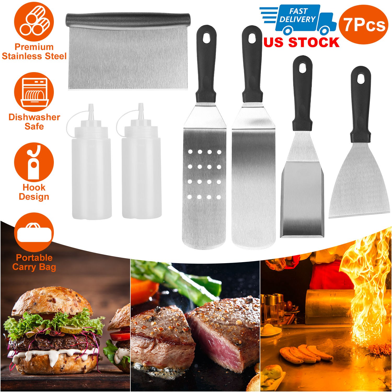 7Pcs Griddle Accessories Kit Stainless Steel BBQ Grilling Utensil Tools Outdoor Barbecue Griddle Spatulas Set for Backyard Party Tailgating Camping