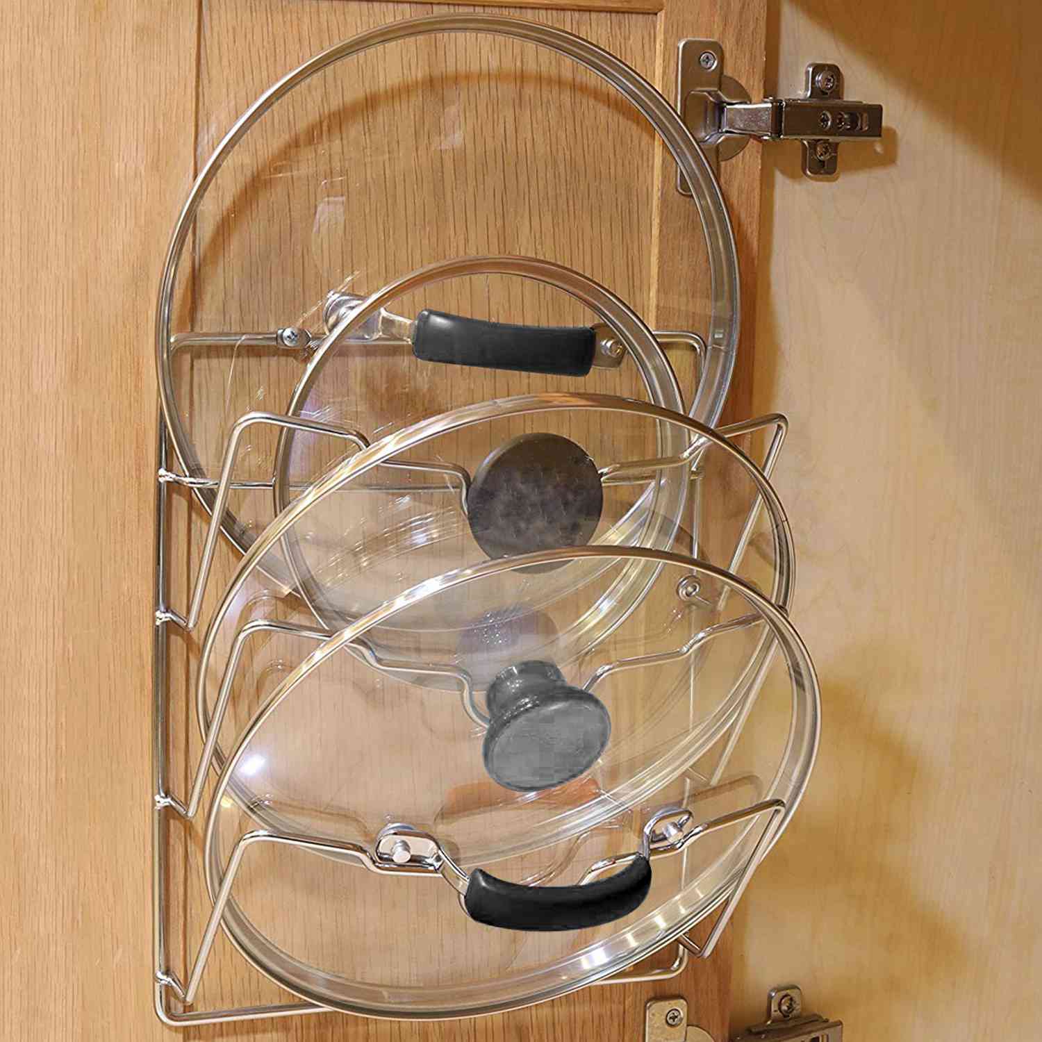 Mounted Pot Lid Rack Pot Cover Organizer Holder for Cabinet Door Wall 5 Lids