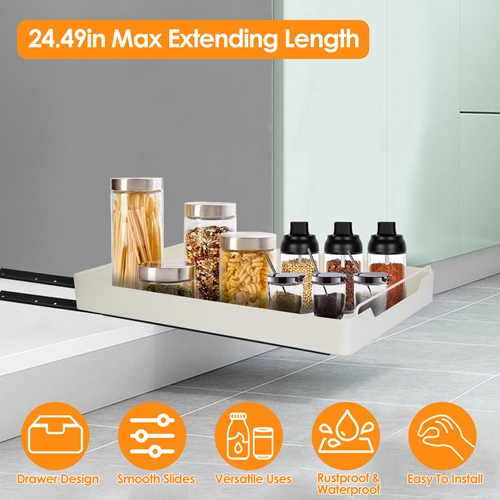 Home > Pull Out Cabinet Organizer Stick On Drawer Carbon Steel Pull Out Shelf Slide Out Pantry Organizer for Kitchen Bathroom Living Room 11.93"Wx16.61"Dx2.2