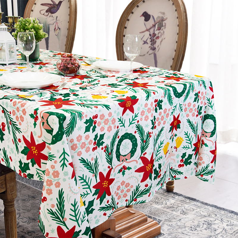 Muwago Christmas Garland Trimming Printed Fabric Tablecloth For Dining Room Decoration Washable Anti-Stain Anti-Oil Table Cover