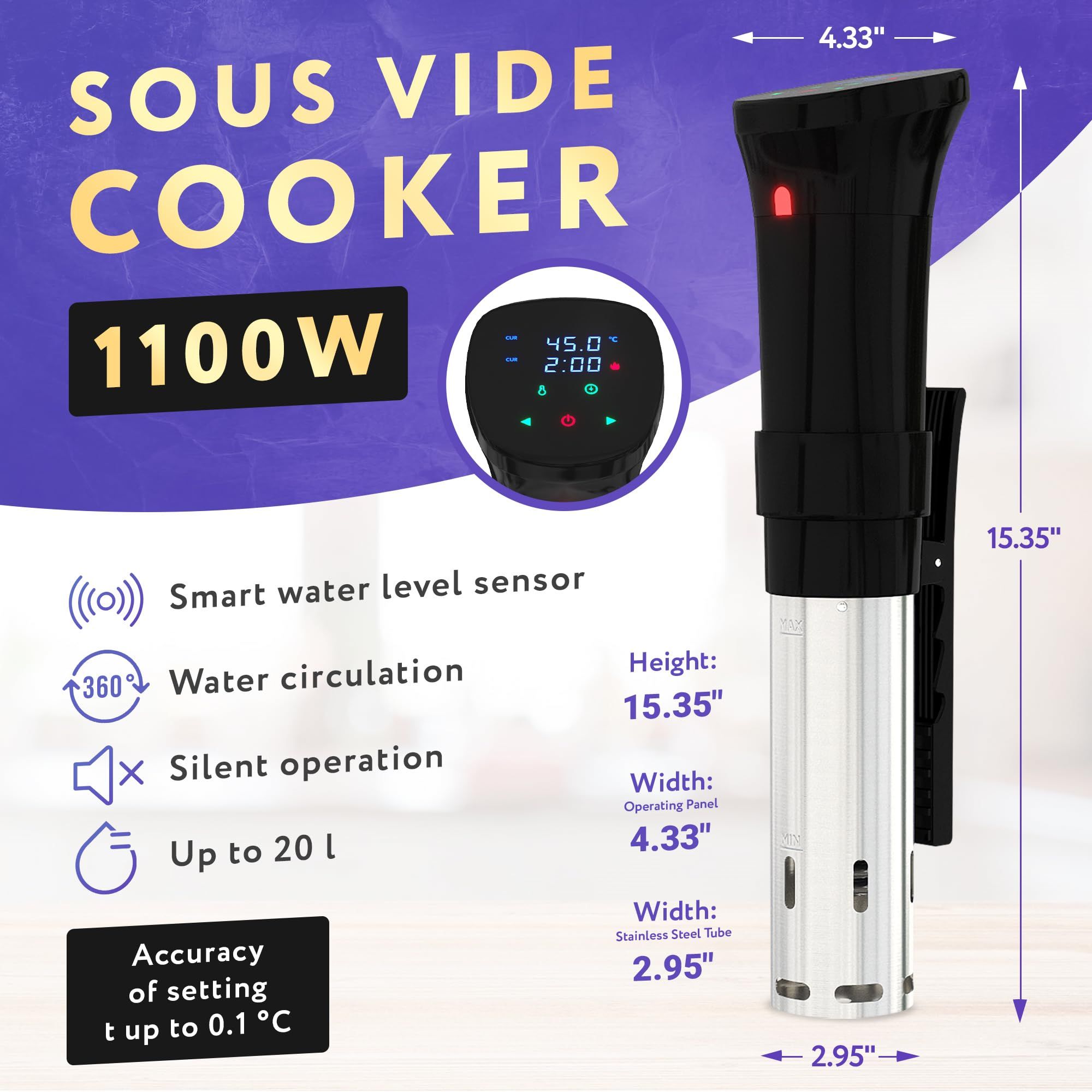 Sous Vide Cooker 1100W. Professional Thermal Immersion Circulator Cooker with Adjustable Clamp. Sous Vide Machines with Digital Timer. Ultra Quiet Sou Sous Vide Cooker 1100W. Professional Thermal Immersion Circulator Cooker with Adjustable Clamp. Sous Vide Machines with Digital Timer. Ultra Quiet Sou Sous Vide Cooker 1100W. Professional Thermal Immersion Circulator Cooker with Adjustable Clamp. Sous Vide Machines with Digital Timer. Ultra Quiet Sou