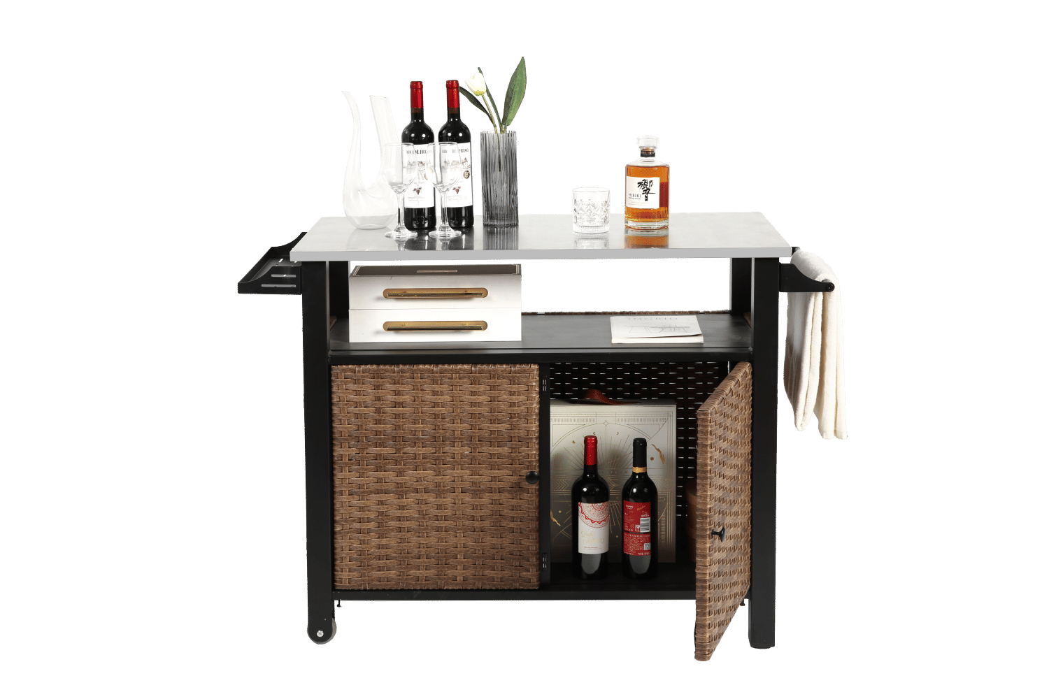 Outdoor Kitchen Wicker Island Rolling Cart & Storage Cabinet