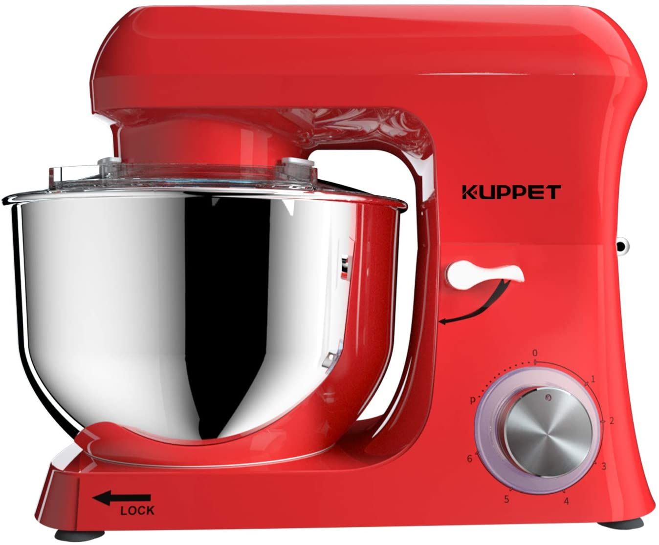 New model of stand mixer: In this mixer, we update the body material, using die-cast metal construction, which can be more stable and not easy to move. 700W high performance pure copper motor and 6+0+P optimized speeds. Noise ≤75dB. Full metal gears for driving mechanism. Tilt-back head allows easy access to the mixing bowl. Included Components: 6.5QT Stainless steel bowl, Wire Whip, Dough Hook, Flat Beater and Splash Guard. KUPPET electric mixer is ETL listed. 2-Year Warranty.