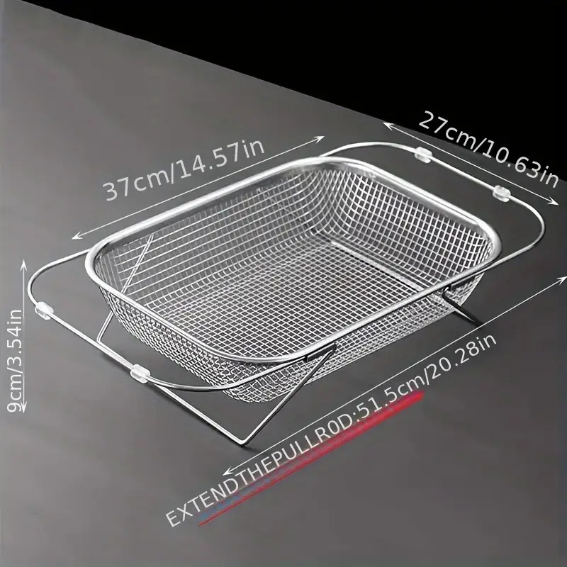 Space Saving:The Adjustable Strainer Sink Dish is great for over the sink, on a countertop or in the sinkFine Mesh: Retractable Kitchen Sink Basket, even and fine mesh, great for rinsing, straining, and draining fruits or vegetablesRetractable Bracket: Sink drain rack can be retracted according to the size of the sink and RetractableMaterial: Over the sink colander is made of stainless steel material, great, strong load bearing, not easy to deform, and easy to cleanMultipurpose:Extendable Colander Strainer can also be used as a basket for placing or displaying fruits and vegetables in or over the sink, or dish rack to air dry utensils, cups, and small plates