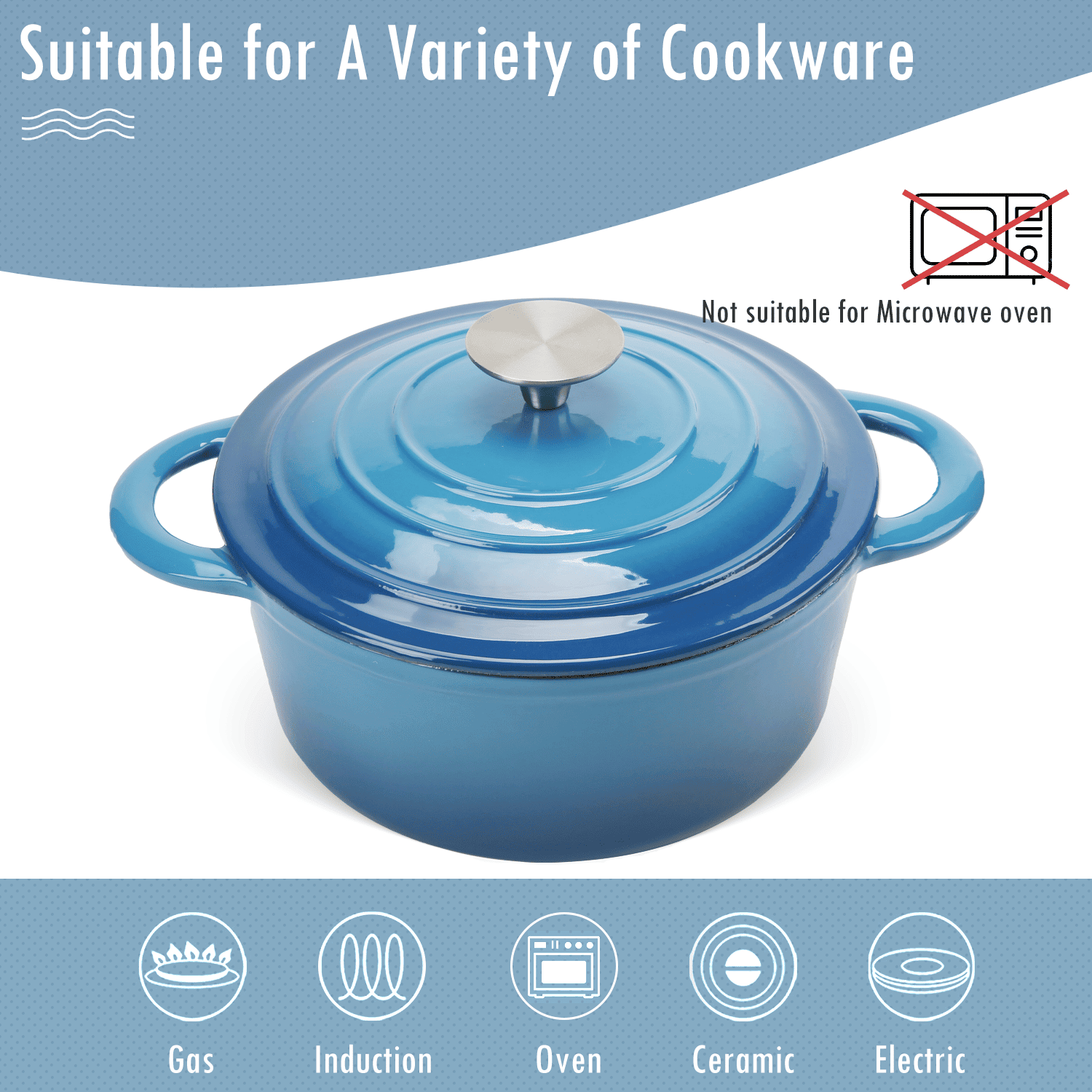 COOKWIN Enameled Cast Iron Dutch ovens are traditionally made with Enameled cast iron—which is fired twice for a durable and visually stunning finish—offers even heat distribution and superior heat retention; it's oven-safe up to 500 degrees Fahrenheit. And it is suitable for